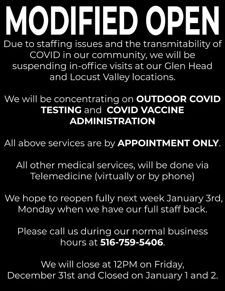 Providers Overview Location Reviews. There is only one health care provider specializing in General Surgery being reported as a member of the medical group. Our walk in clinic has proudly served Glen cove New York for more than 20 years.